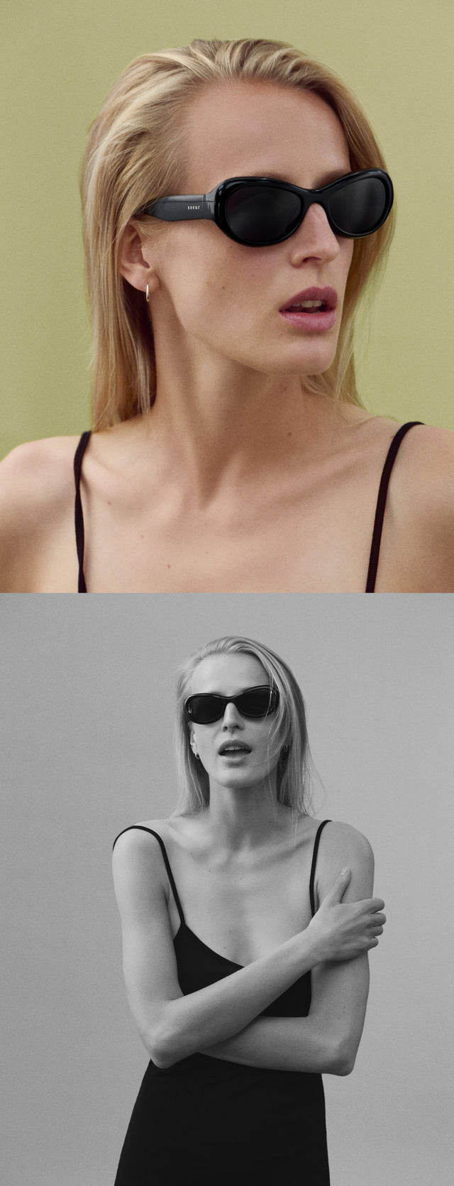 Made in Italy, the glasses meld materials – acetate and metal – with the Soeur colour identity: deep brown, mineral taupe, dense mocha, luminous anthracite and intense black. The attention to detail continues with a custom-designed case for each pair, accompanied by a cotton pouch and a branded care cloth.