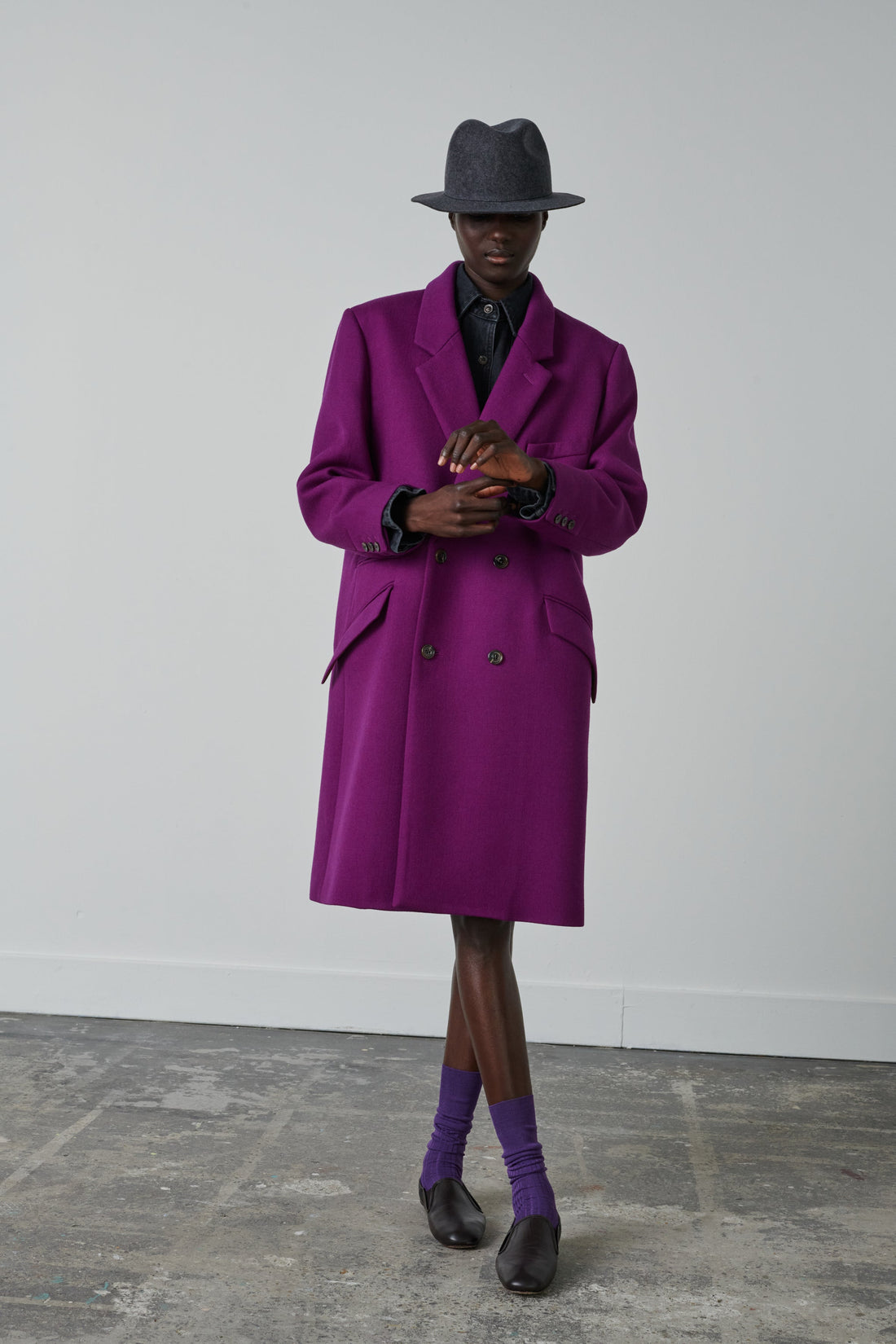 Coat in virgin wool twill fushia