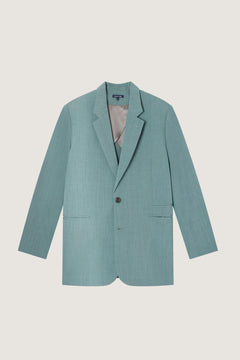 VALENCIA is a sea-green, straight-cut pant. A crisp crease along the leg helps elongate the figure. Paired with the AUTEUIL jacket, it creates a vibrant, head-to-toe look. Crafted from supple wool, the fabric blends colored threads to create a shimmering, almost iridescent effect.
