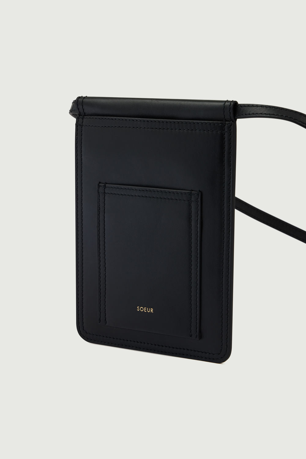 clutch baldy Smooth leather flat pouch with shoulder strap