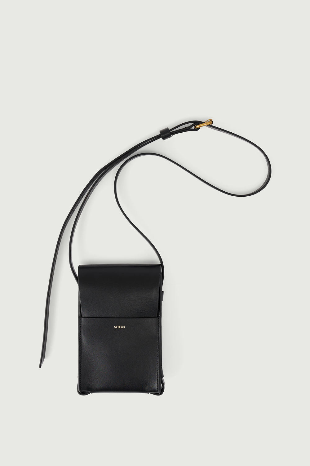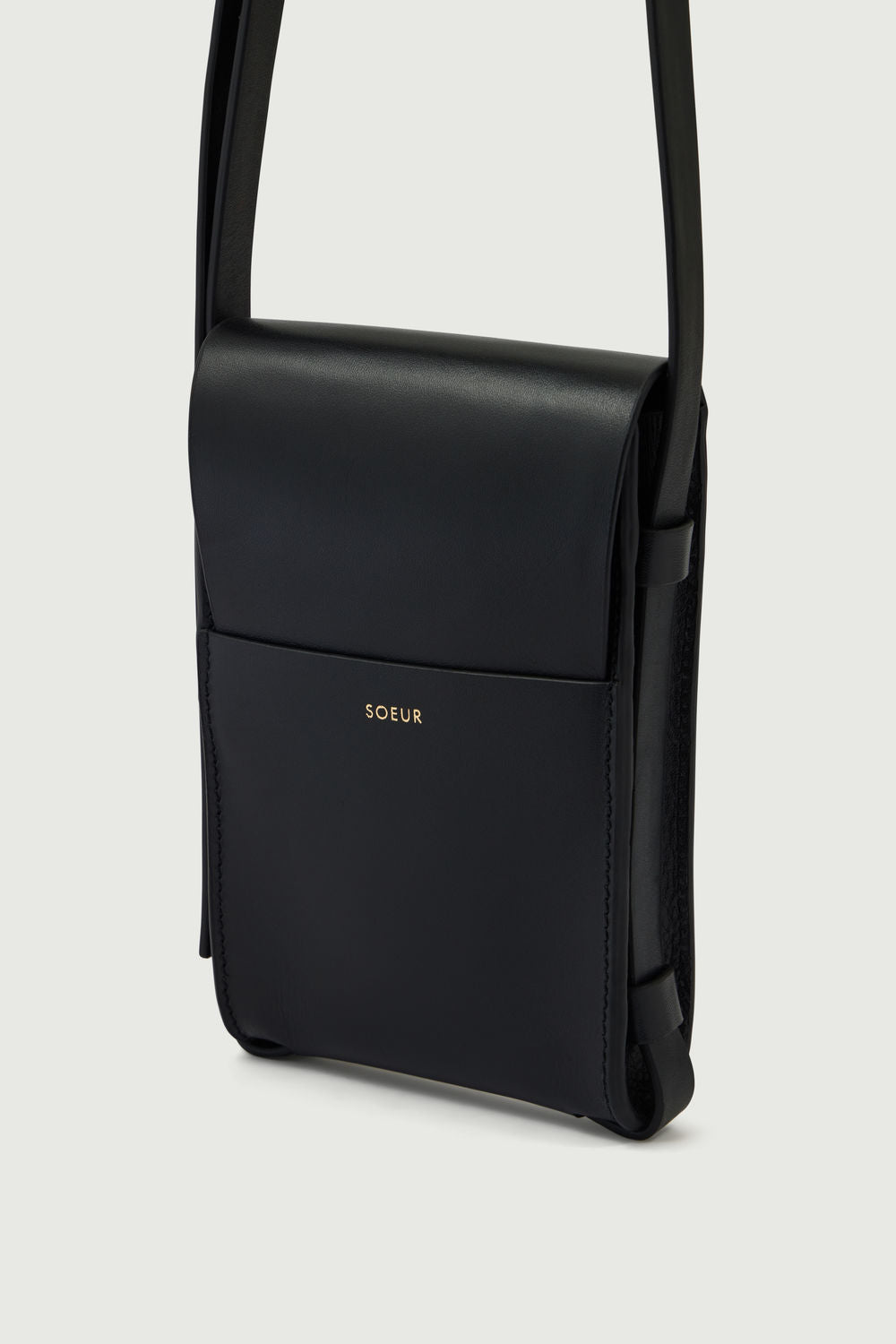 - Smooth leather flap phone holder with shoulder strap