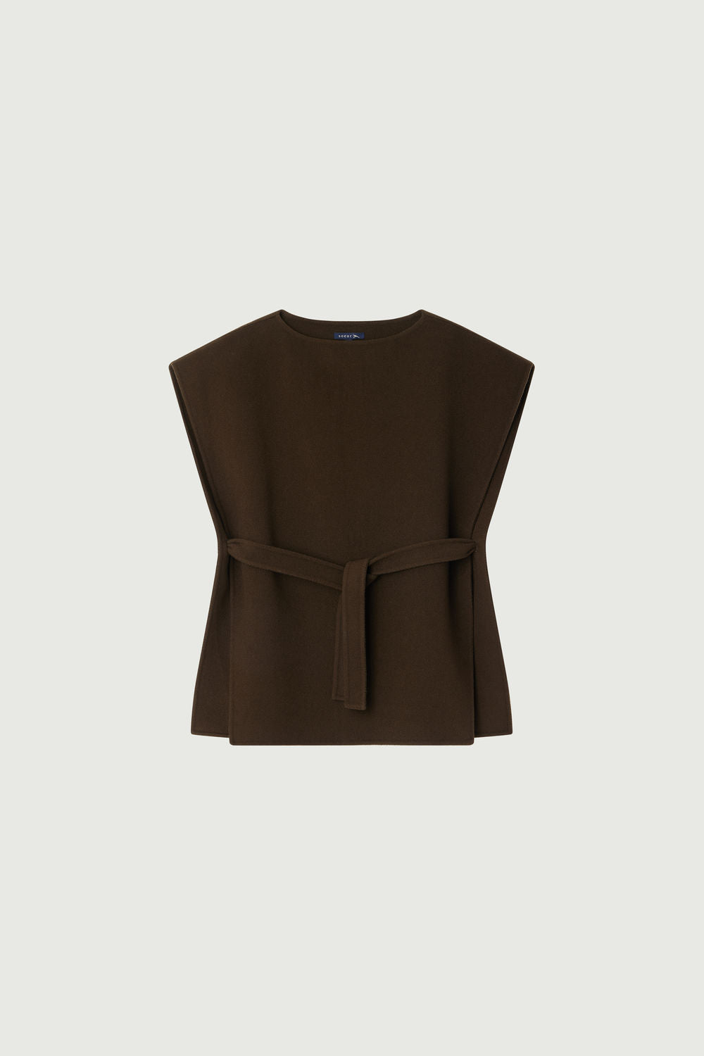 CIEL is a sleeveless woollen bib perfect for layering up. It has a loose fit, invisible finishes, and can be cinched with side buttons and/or a tie belt to create a blouse effect. The double-faced wool is especially insulating, keeping you very warm while remaining soft and supple.