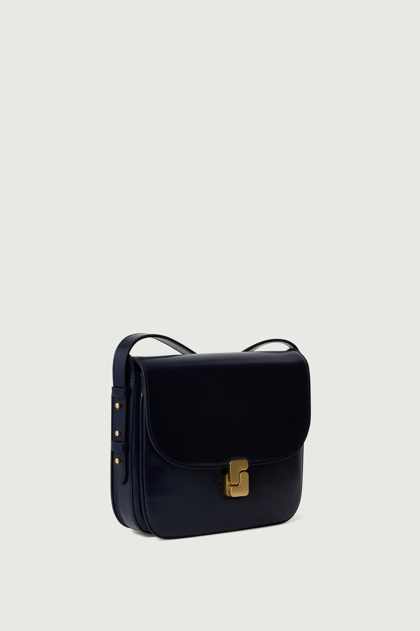 bellissima maxi bag Large blue glazed leather bag with "S" monogram